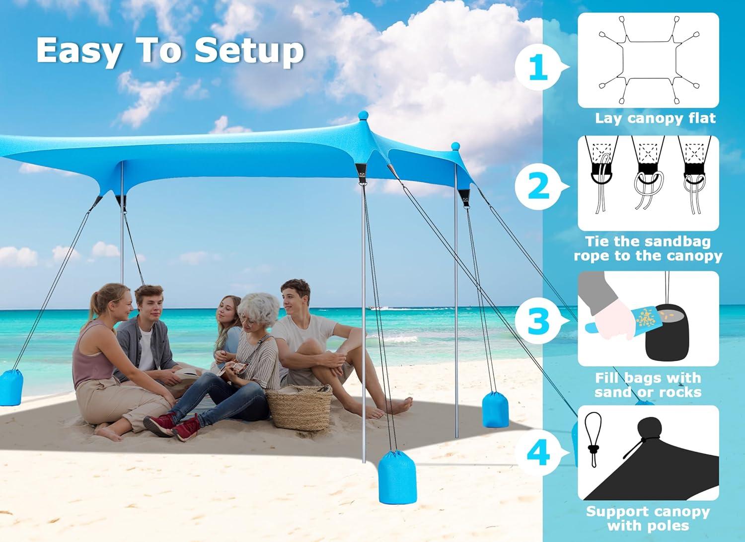 Flexible Setup for Any Occasion: Adjust pole count and sandbag angle to optimize sun blocking for the beach, fishing, garden, or picnic. Detachable sandbags can also be replaced with wind ropes to use as backyard canopies, camping shelters, and more. Ideal for friends and family to enjoy time together outdoors